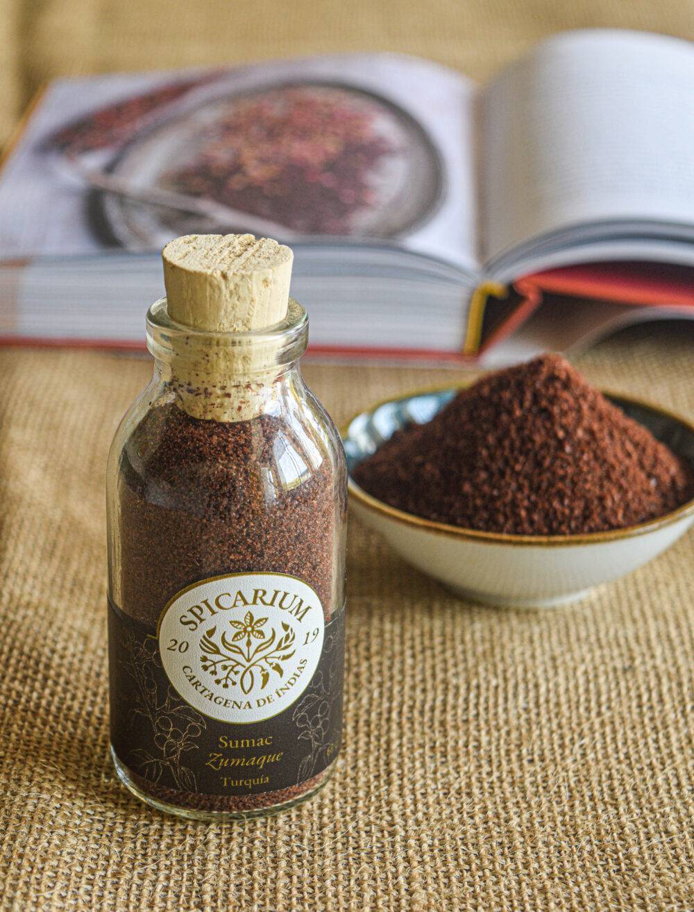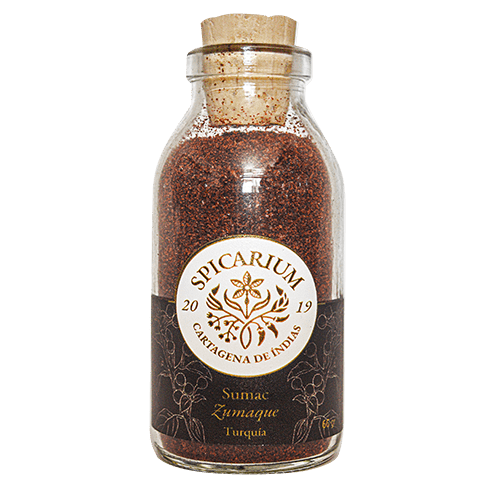 Esta especia proviene del fruto de un arbusto nativo del Mediterráneo, Rhus coriaria. Cultivado por siglos especialmente en Sicilia, Turquía, Iraq e Irán, es una especia esencial de la cocina árabe y del Medio Oriente. Especialmente se utiliza por su cualidad acidulante, por lo cual resalta el sabor de los alimentos. Los romanos utilizaban el sumac en sus preparaciones antes de que llegaran los cítricos a la región.